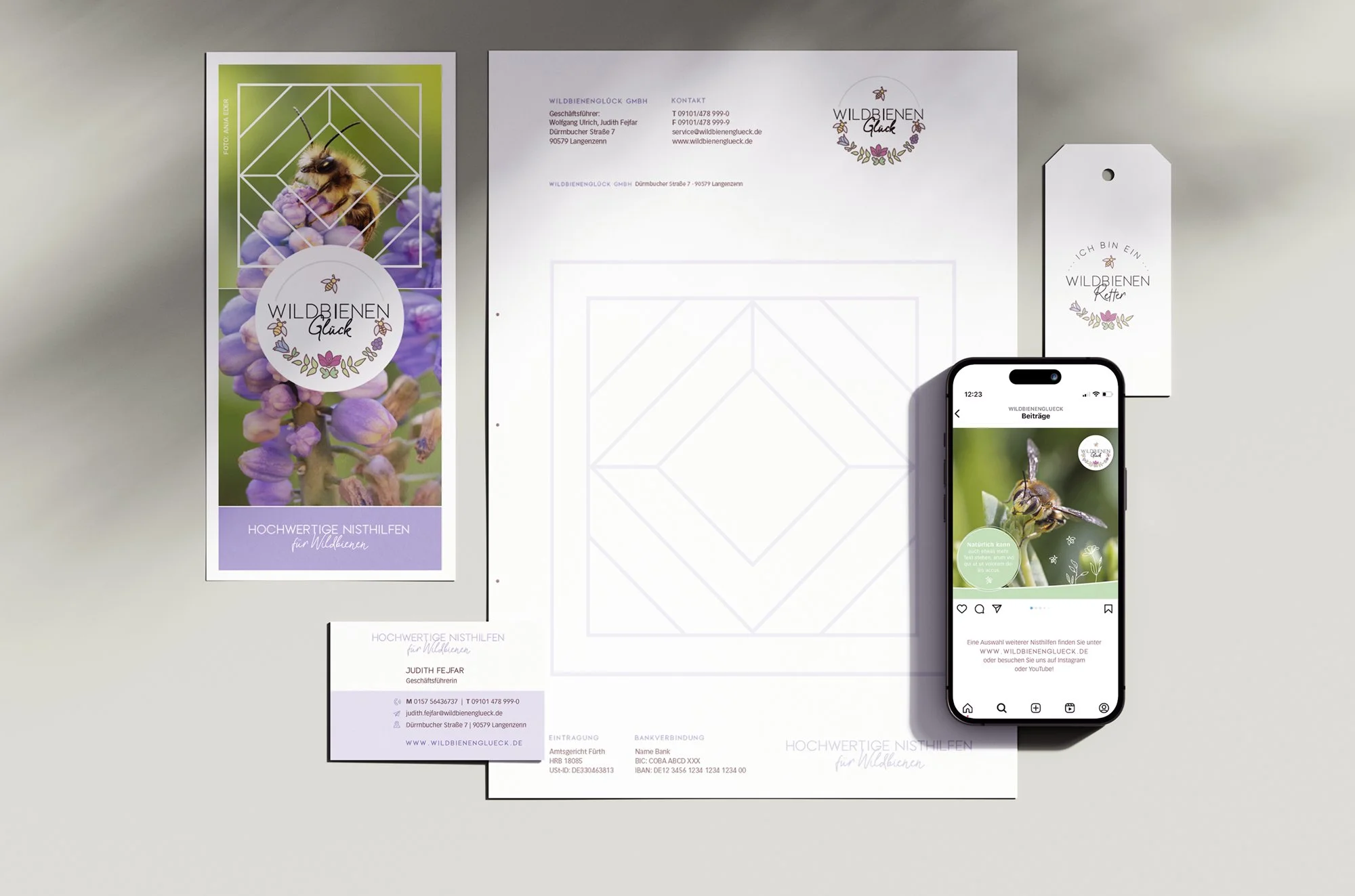 Als mich Judith von Wildbienenglück, einem Familienunternehmen aus Fürth anfragte, gab es bereits schon ein schönes Logo. Ich gestaltete Flyer, Broschüren, Kalender, Social Media Vorlagen und auch die Fahrzeugbeschriftung.